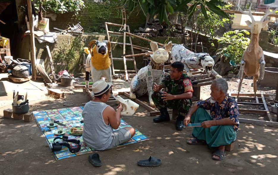 Lombok Barat, NTB – Suasana persiapan jelang Gawe Gubuk Sedesa Peteluan Indah, Kecamatan Lingsar, mulai terasa. Bintara Pembina Desa (Babinsa) Peteluan Indah, Komando Rayon Militer (Koramil) 1606-08/Narmada, Sertu Muhasim, melaksanakan pengecekan pembuatan peraje-perajean di Dusun Bagek Nunggal Timur, tepatnya di rumah Bapak Samsul yang dikenal sebagai seniman lokal dalam pembuatan ornamen tradisional tersebut, Jum’at (22/8/2025).