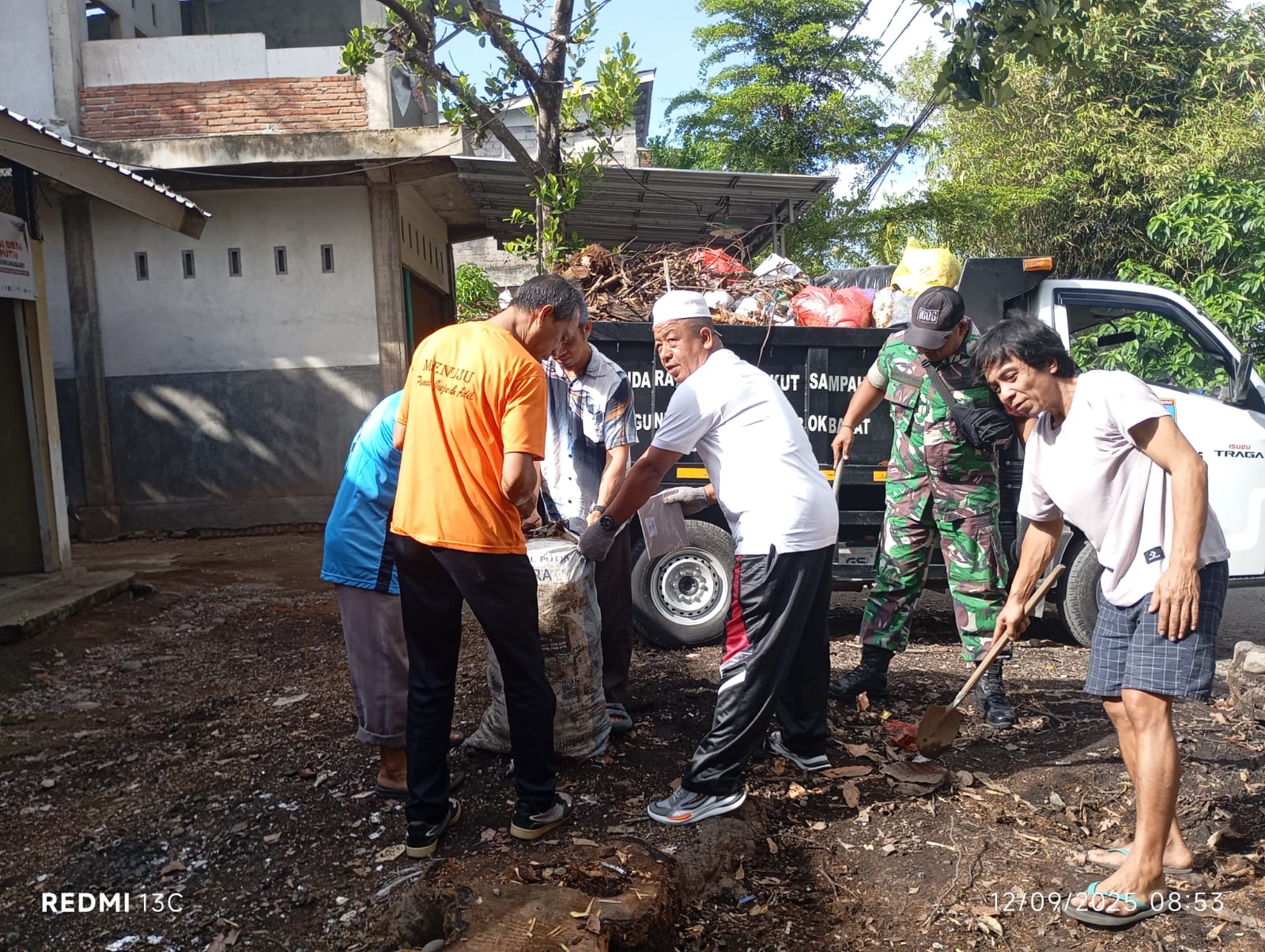 Kegiatan yang dilakukan secara bersama-sama ini difokuskan pada pengangkutan sampah serta pembersihan ranting dan dedaunan yang menumpuk di sekitar pemukiman warga. Aksi ini menjadi wujud kepedulian terhadap kebersihan dan kesehatan lingkungan, sekaligus mempererat hubungan antara Babinsa dengan masyarakat.