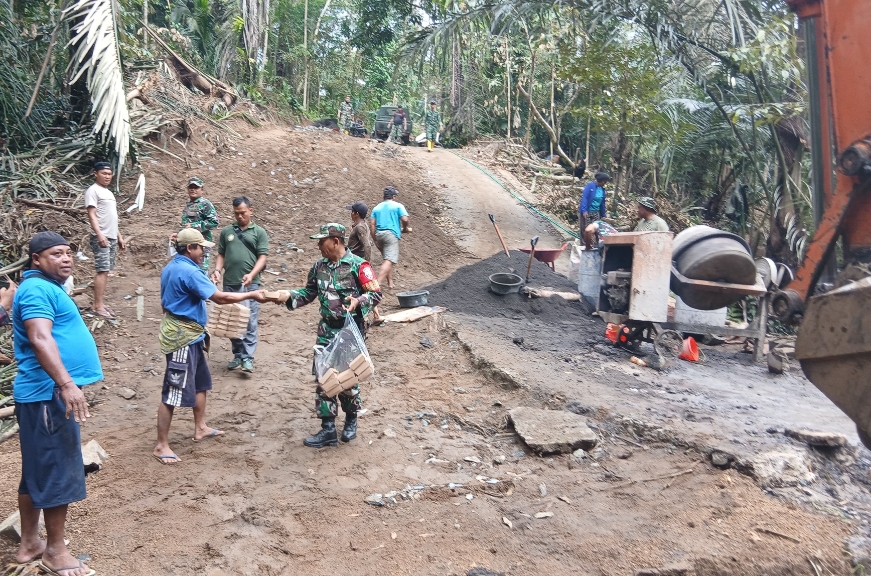 Lombok Barat, NTB – Menjelang Hari Ulang Tahun (HUT) Tentara Nasional Indonesia (TNI) ke-80, suasana kebersamaan semakin terasa di Desa Giri Madia, Kecamatan Lingsar, Lombok Barat (Lobar), Nusa Tenggara Barat. Bintara Pembina Desa (Babinsa) Giri Madia, Komando Rayon Militer (Koramil) 1606-08/Narmada menggelar bakti sosial dengan membagikan 80 kotak makan makanan kepada warga dan para pekerja yang sedang berjibaku membuka serta melebarkan akses jalan desa, Minggu (21/9/2025).