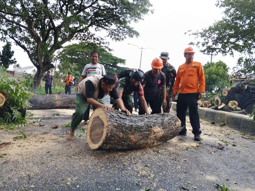 Dengan menggunakan alat seadanya seperti gergaji dan parang, mereka bergotong royong memotong batang pohon dan menyingkirkannya dari badan jalan. Berkat kerja sama yang solid, arus lalu lintas kembali normal dalam waktu singkat.