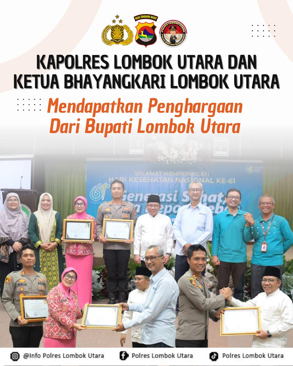 “Penghargaan ini merupakan bentuk apresiasi yang sangat berarti bagi kami. Tentunya menjadi motivasi bagi seluruh jajaran Polres Lombok Utara untuk terus berkontribusi dan bersinergi dalam meningkatkan kualitas pelayanan publik, termasuk di bidang kesehatan masyarakat. Terima kasih kepada Pemerintah Daerah dan seluruh tenaga kesehatan yang telah menjadi mitra kami dalam menjaga masyarakat tetap sehat dan aman,” ungkapnya.