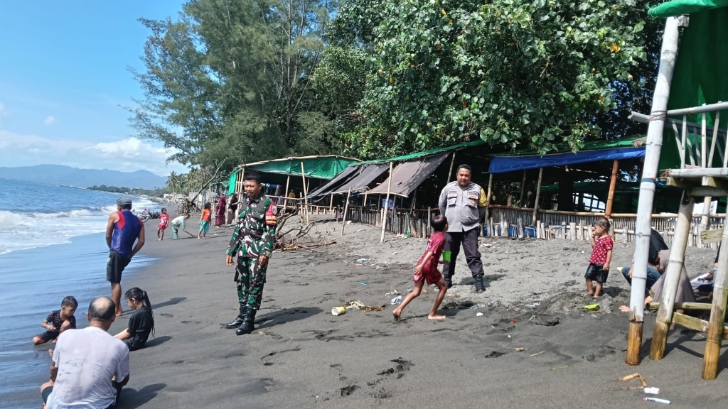 Babinsa Jempong Baru, Serka Samsuri, menjelaskan bahwa pengawasan dilakukan secara aktif dan humanis. Tidak hanya memantau situasi, petugas juga turun langsung berinteraksi dengan wisatawan. “Kami tidak sekadar memantau, tetapi juga memberikan imbauan agar wisatawan selalu berhati-hati, khususnya saat berenang, serta memperhatikan kondisi cuaca dan gelombang laut,” ujarnya.